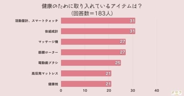 <調査結果>健康のために取り入れているアイテムは?同率1位『活動量計、スマートウォッチ』と『体組成計』!
