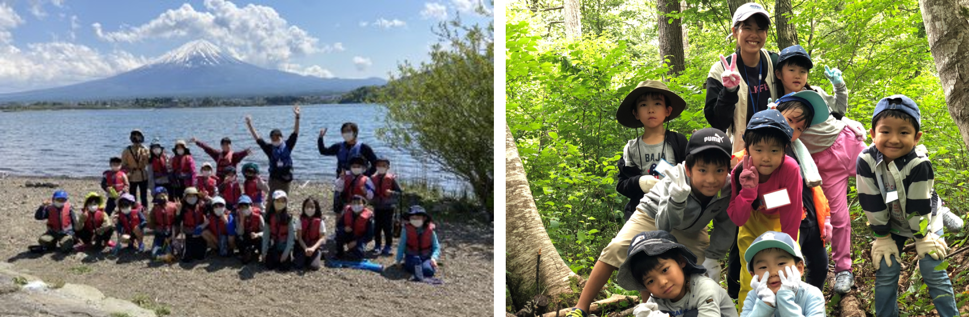 実施内容:秘密基地作りをしよう、ネイチャークラフト体験、河口湖でカヌーをしよう など