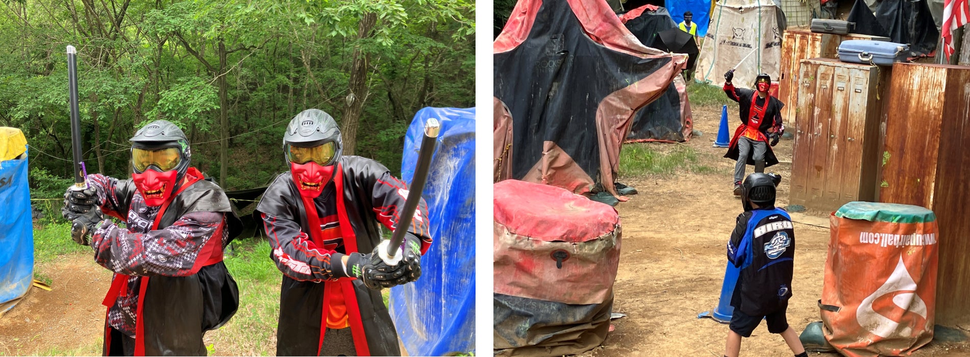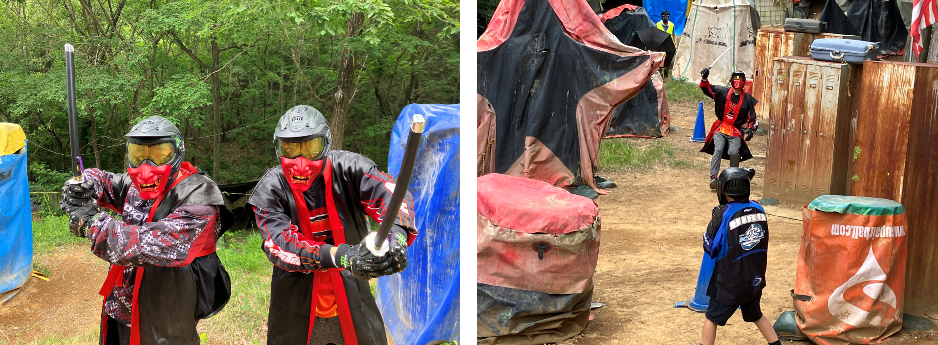 実施内容:ペイントボールを発射するマーカーを持って鬼退治に挑戦しよう、表彰式 など