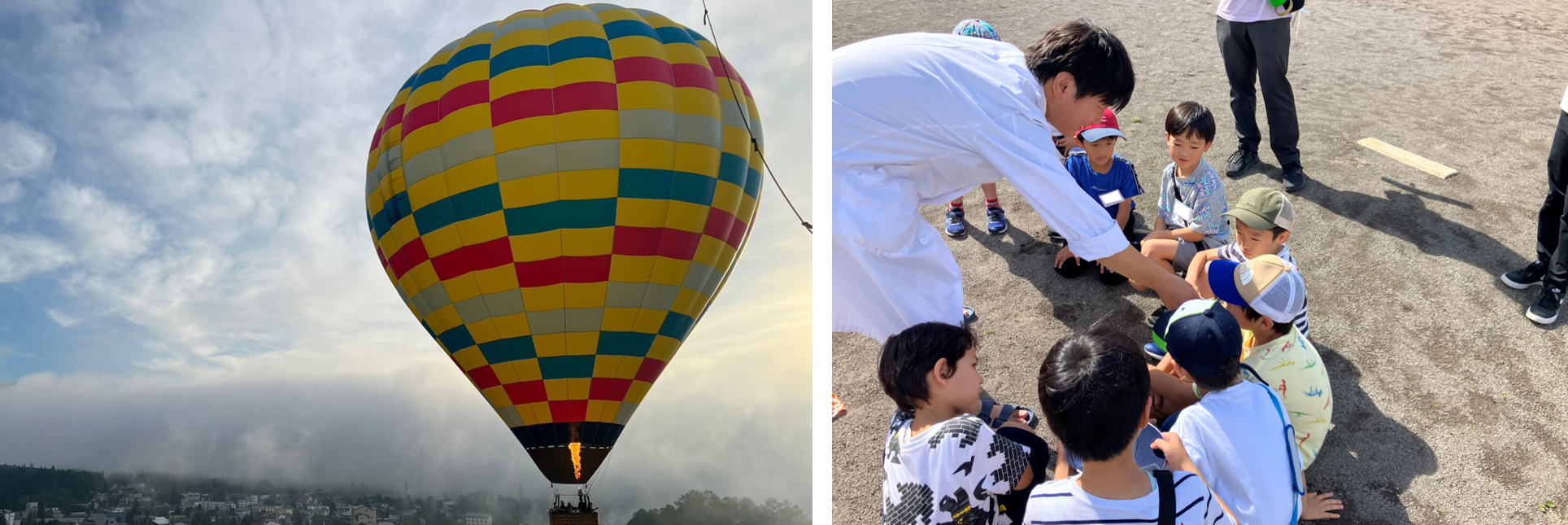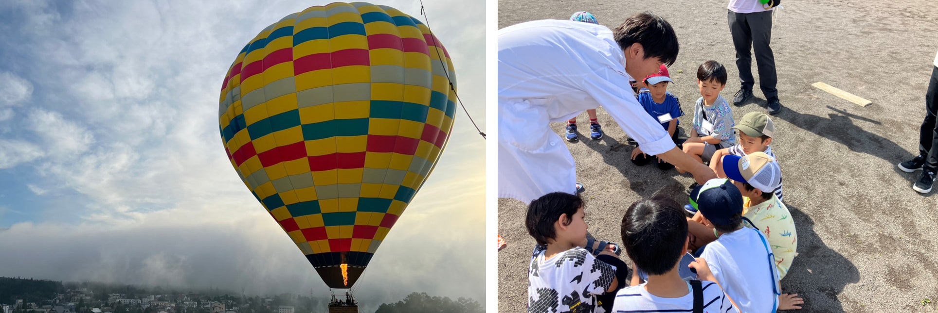 実施内容:気球に関する実験をしよう、気球に乗ろう、膨らませた熱気球の中に入ってみよう など