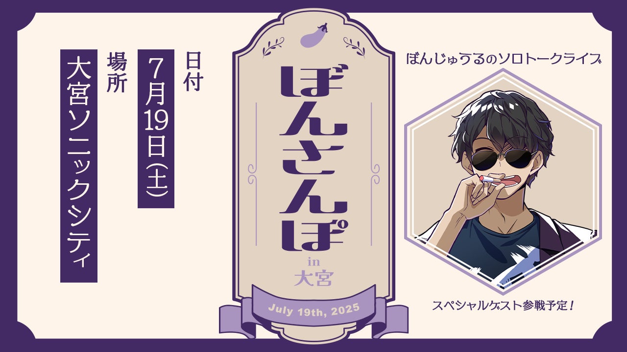 ゲーム実況グループ「ドズル社」の ぼんじゅうるによるソロトークライブ、「ぼんさんぽ in 大宮」のチケット一般販売が開始!