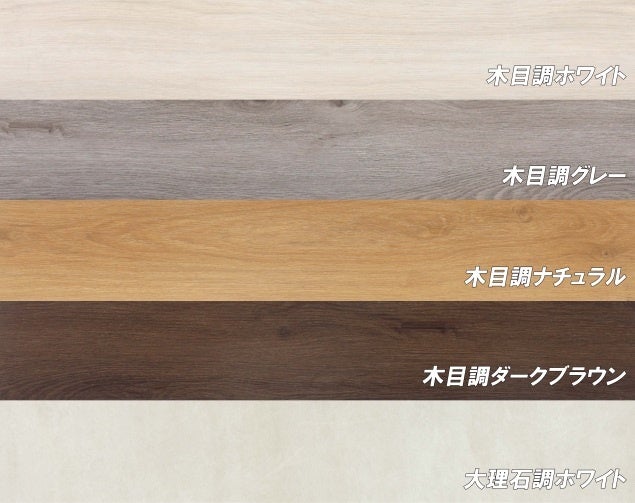 また、素材には炭酸カルシウム主体の新素材(SPC)を使い、温・湿度変化による寸法変化を低減。傷や汚れが付きにくく丈夫なので、土足の場所でも使用できます。裏面はクッション素材を使用し、落下音や・歩行音を軽減します。既存の床材の上からでも施工でき、接着剤や釘を使う必要がないのでプロの方からDIYユーザーまで幅広い方にご利用いただけます。