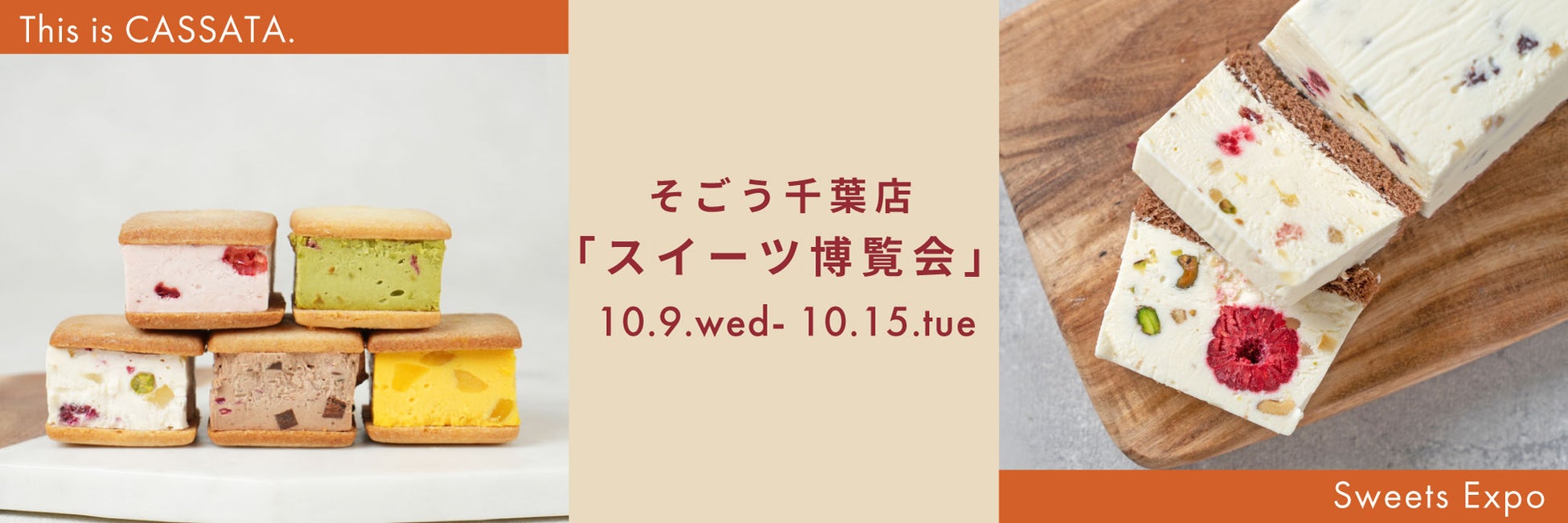 イタリアンチーズケーキ“カッサータ”専門店This is CASSATA.は、そごう千葉店 6階 催事場 で開催される「スイーツ博覧会」に10月9日(水)~10月15日(火)の7日間限定で出店することが決定いたしました。