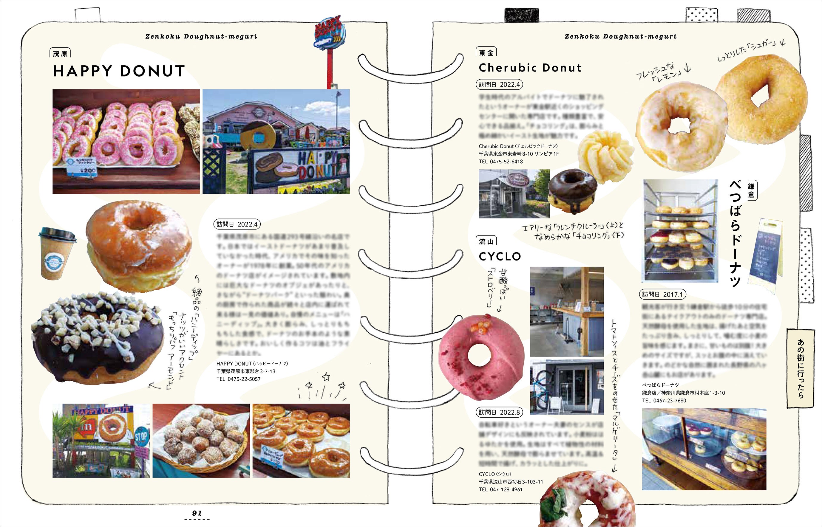 「関西ドーナツ旅」「老舗パン屋さんのドーナツ」「「大豆系ドーナツ」……などテーマごとに紹介。