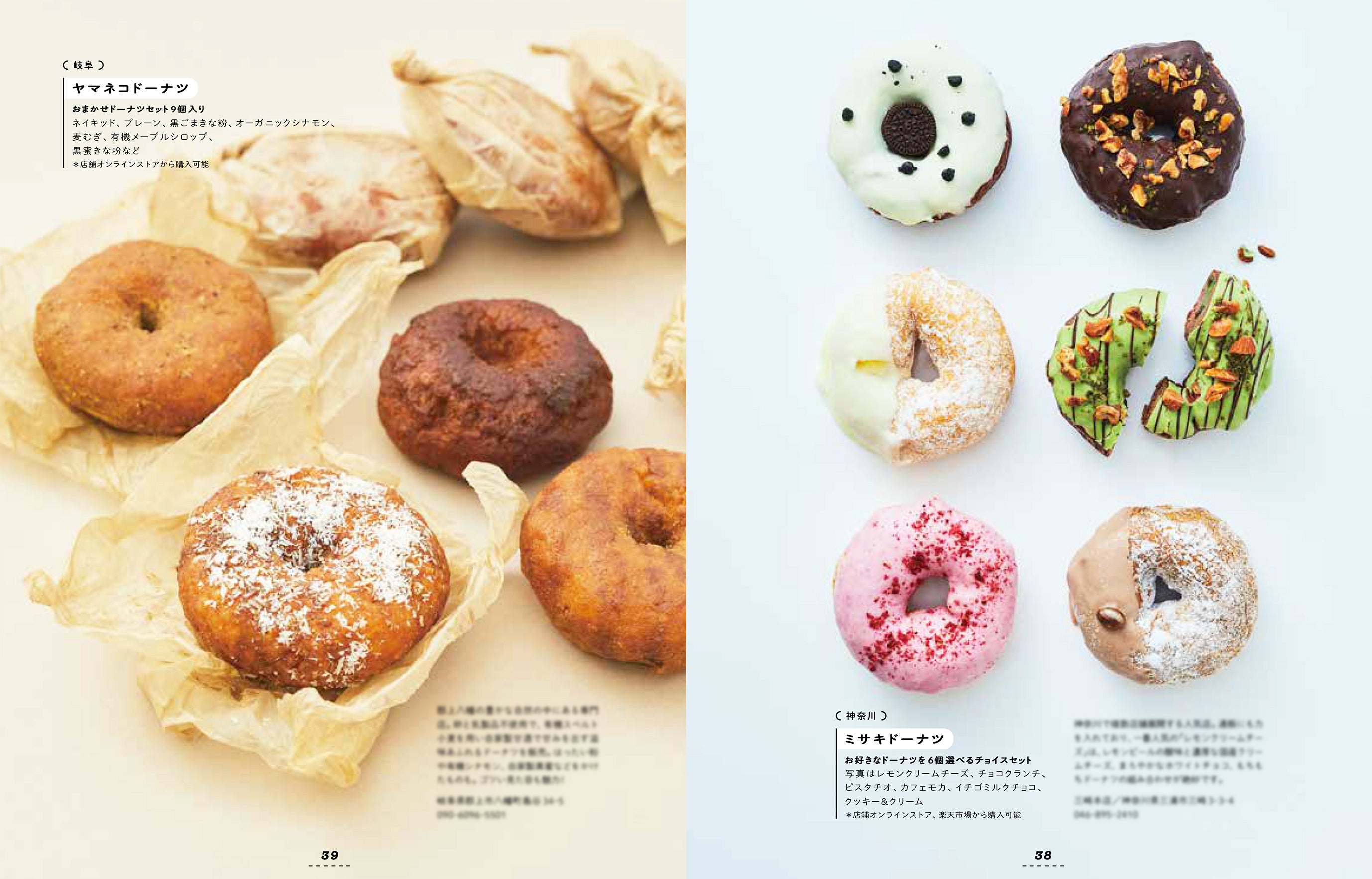 関西ドーナツ旅/札幌/福岡/沖縄/東京ドーナツ散歩/あの街に行ったらこのドーナツ/老舗パン屋さんのドーナツ/植物性食品で作った極上ドーナツ/大豆系ドーナツはやさしい味/チョコレートドーナツBest3/ オールドファッションBest3/食事系ドーナツ/クリームドーナツ……ほか