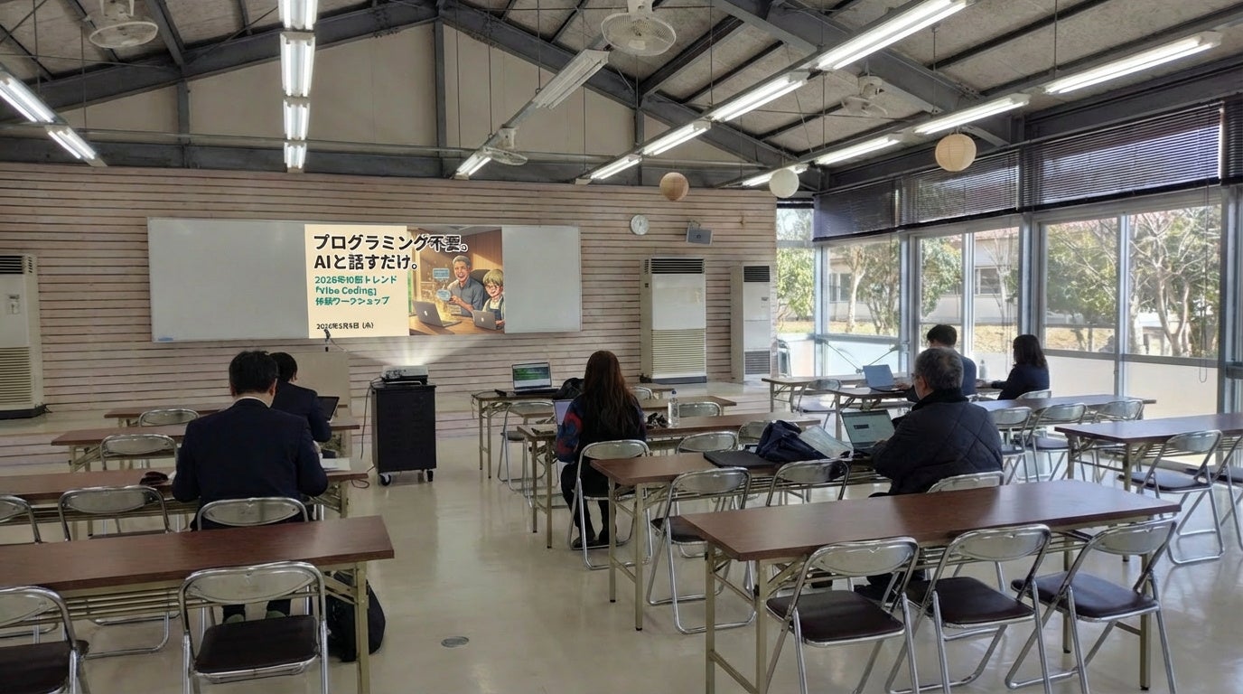 従来のプログラミング教室とは異なり、難しいコードの学習は一切不要。AIに日本語で話しかけるだけでアプリが完成する「Vibe Coding」の手法を用いることで、年齢や職業を問わず誰でも参加できる設計です。むしろ、既存のITインフラや古いシステムに縛られない地方だからこそ、AIを起点にゼロから最適な仕組みを構築でき、「後発の優位性」を活かせる可能性があります。