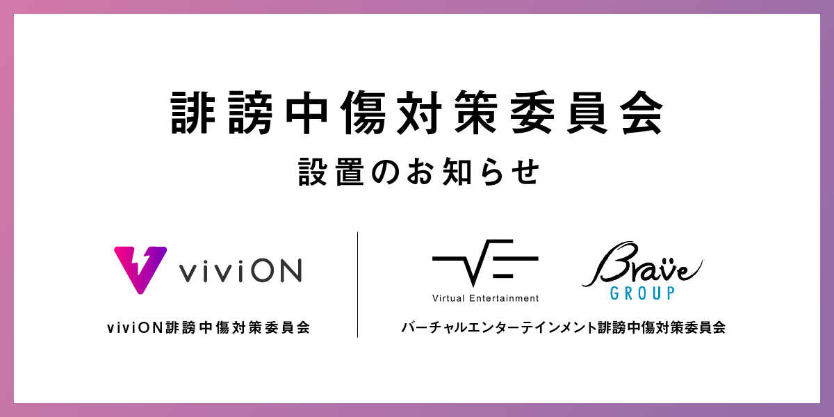 株式会社viviONは、誹謗中傷行為、名誉毀損行為、プライバシー権の侵害行為、ストーカー行為などの攻撃的行為から、弊社所属VTuber・クリエイター及び従業員(以下「メンバー等」といいます。) の権利を守り事業を円滑に推進するため、弊社顧問弁護士を含めた以下の委員による「誹謗中傷対策委員会」を設置いたしました。