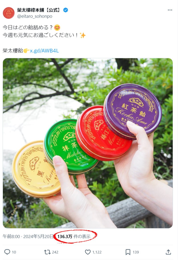 先日、Xで130万以上のインプレッションを記録し、話題となった榮太樓の飴。