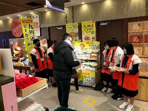 直方市立植木中学校の生徒が考案した商品「おいもゆずらん九州あられ」を販売