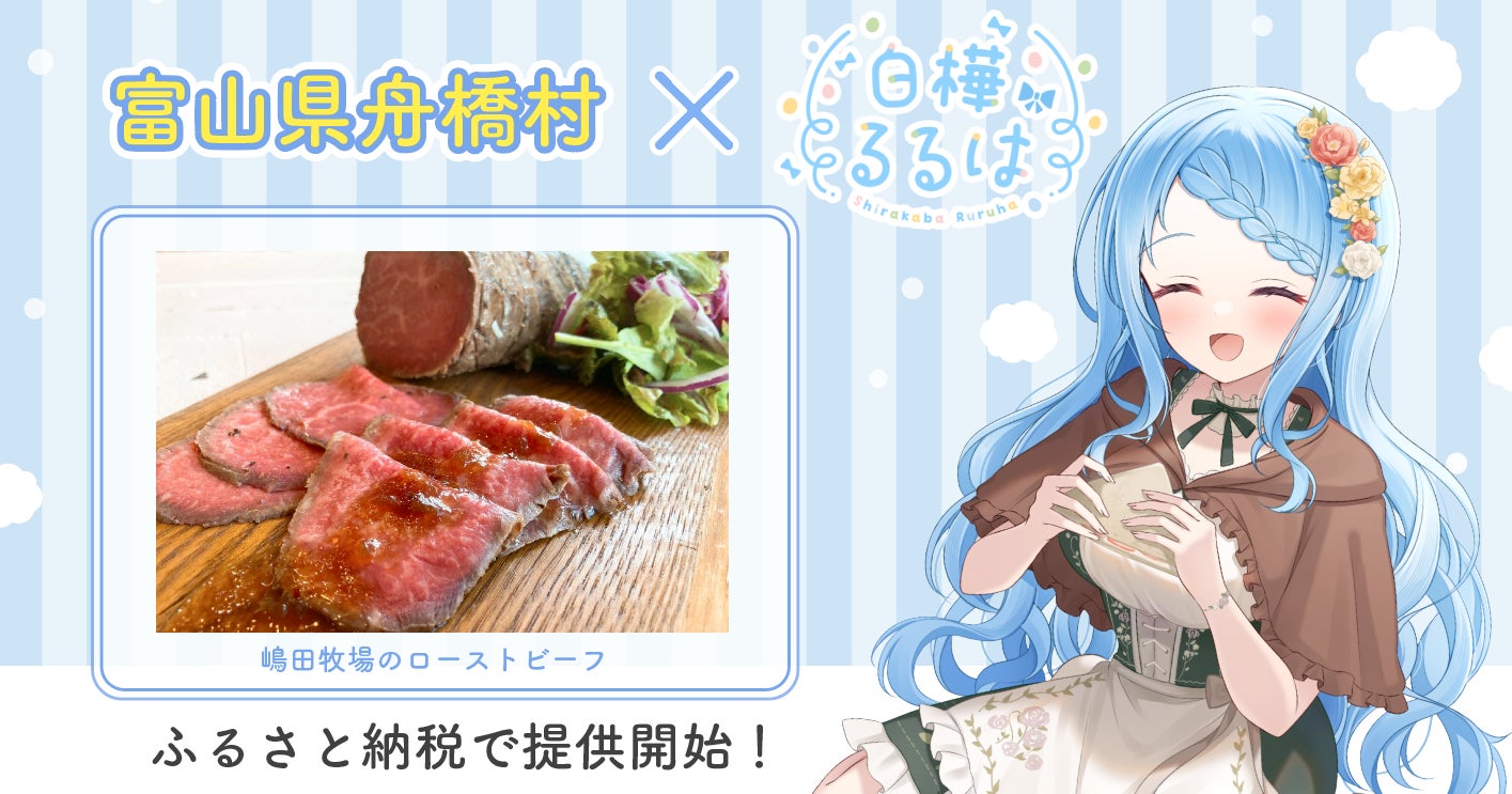富山県舟橋村がVtuber「白樺るるは」とコラボ!嶋田牧場のローストビーフをふるさと納税の返礼品として提供します。