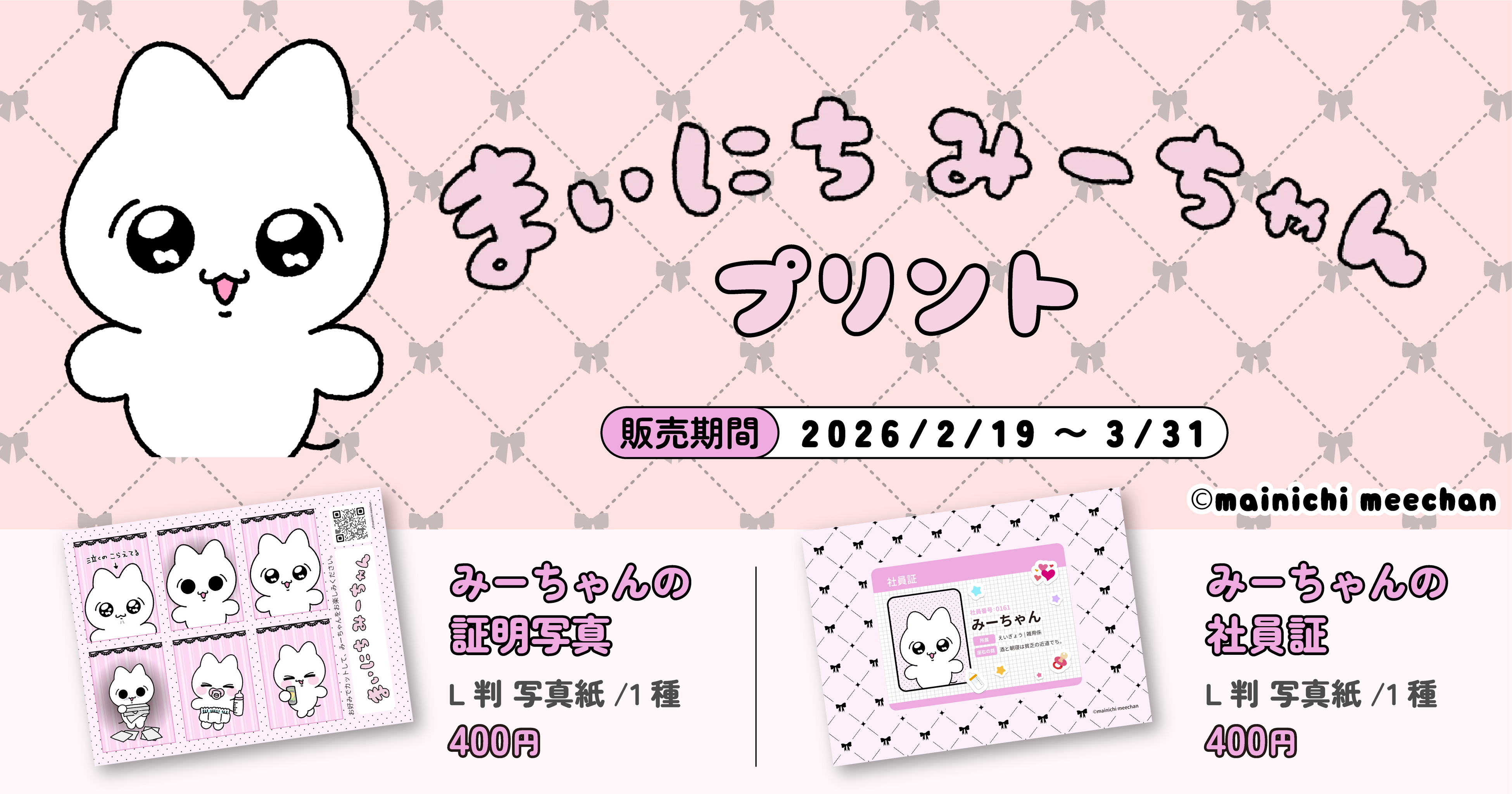 今回のコラボでは、SNSで人気爆発中のキャラクター「まいにちみーちゃん」の実際に使っている!?(かもしれない)グッズがコンビニプリントとして登場します。カットすることでスマートフォンに挟んで楽しむこともできるため、いつでも持ち歩けて、毎日の中で“みーちゃん”をそっと感じられるアイテムに!ぜひお近くのコンビニでプリントしてお楽しみください。