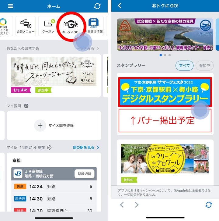 西日本旅客鉄道株式会社(以下「JR西日本」)、京都駅ビル開発株式会社(以下「京都駅ビル」)、株式会社ギックス(以下「ギックス」)は、JR西日本が提供する移動生活ナビアプリ「WESTER」にて、8/1(月)~9/3(土)に開催される「下京・京都駅前サマーフェスタ」において、デジタルスタンプラリーを実施します!