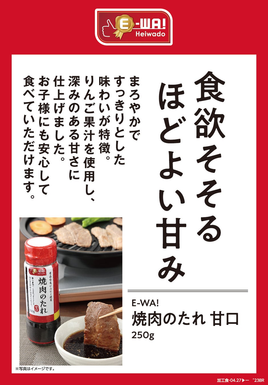 【平和堂】<こだわりブランドE-WA!新商品>焼肉のたれ 甘口 ~食欲そそるほどよい甘み、青森県産にんにく使用~