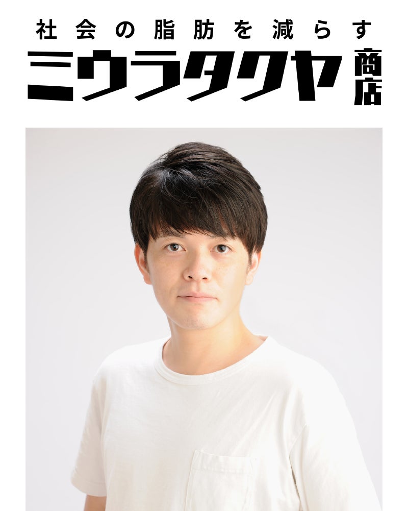 「社会の脂肪を減らす」をコンセプトにダイエット食品店「ミウラタクヤ商店」を運営。バターコーヒーや断食プロテインなどユニークな健康食品を販売。「痩せたい人にダイエットの成功を届ける」を信念に、商品を売るだけでなくお客様のダイエットの成果を出すことを支援する「日本一誠実な健康食品屋」を目指す。LINEを活用した人柄オンライン接客で顧客にファンになってもらうことが得意。月商の70%はリピーターという数字を叩き出す。