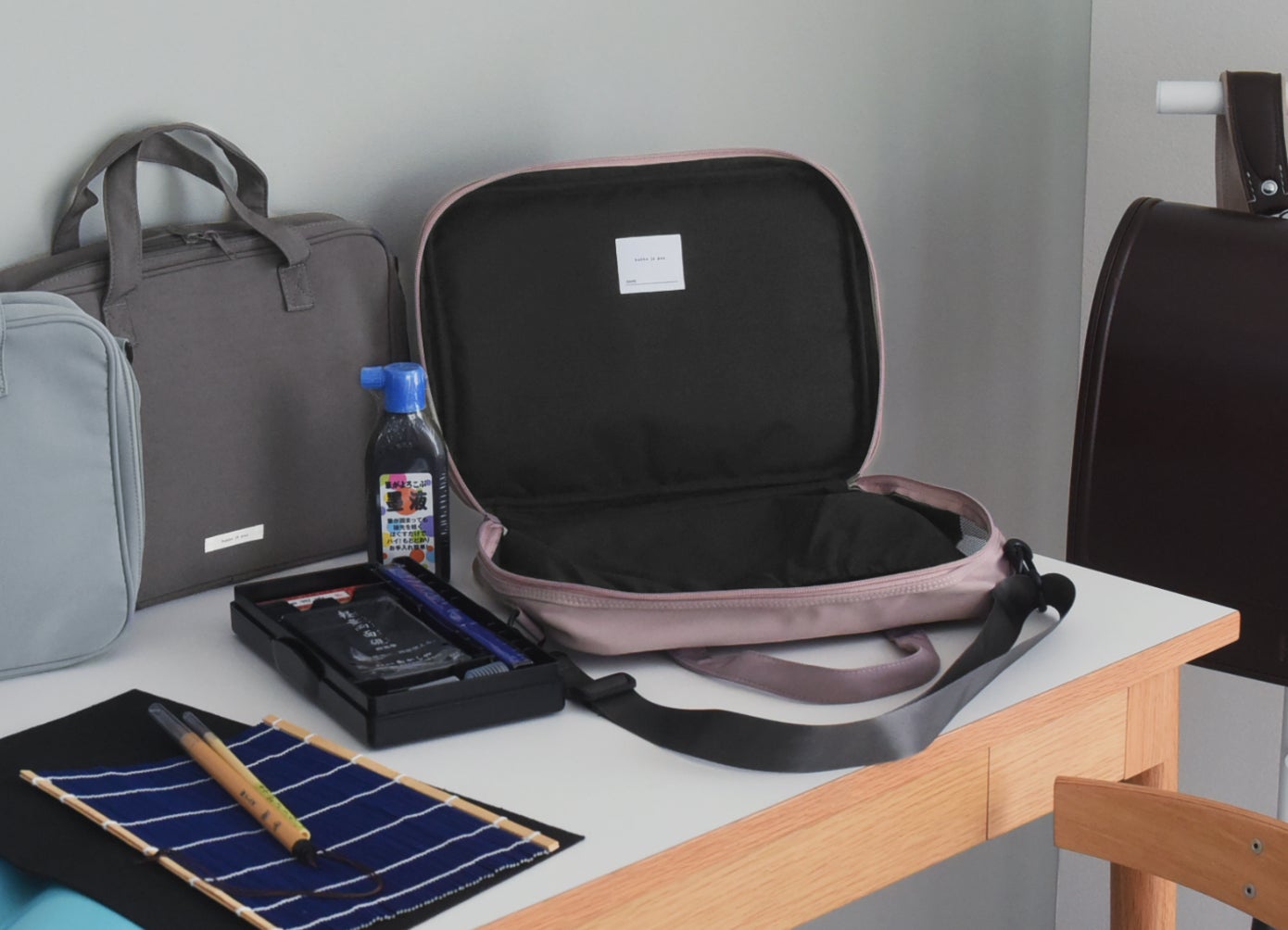 3年生から高学年まで飽きずに使えるように、シンプルデザインで仕上げた書道セットケースです。