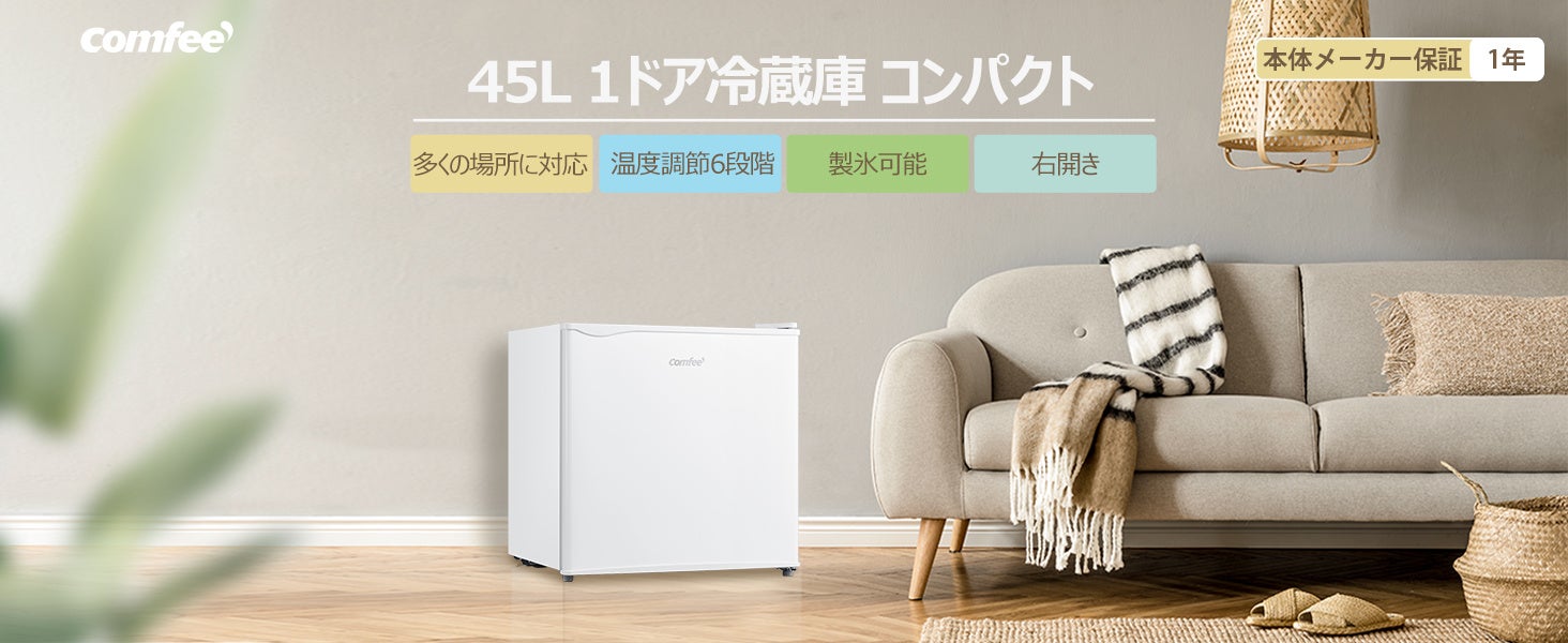 COMFEE'の45L 1ドア冷蔵庫は、コンパクトサイズながらも実用性に優れたモデルです。限られたスペースでも設置しやすく、キッチンはもちろん、ワンルームの一人暮らし、寝室、オフィス、寮や書斎など、さまざまな場所にフィットします。6段階の温度調節機能を搭載しており、季節や食材の量に応じて最適な温度に設定可能。冷却性能も十分で、製氷もできるため、暑い季節や来客時にも便利です。右開き仕様でドアの開閉もスムーズ。シンプルでスタイリッシュなデザインはインテリアにもなじみ、静音設計で生活の妨げにならず、快適な空間づくりをサポートします。コンパクトでも機能をしっかり備えた、頼れるパートナーです。