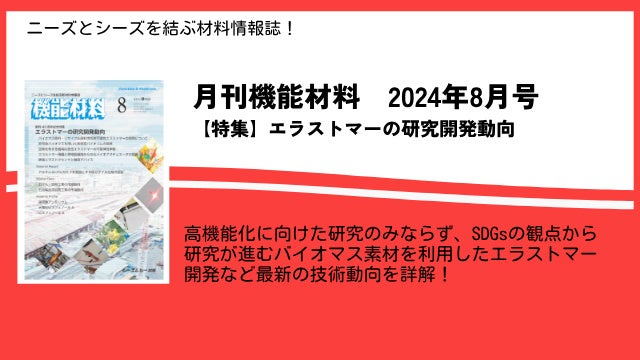 非可食バイオマス素材を利用したエラストマーの開発など、エラストマーの最新動向を特集!月刊機能材料2024年8月号を8月7日に発売!