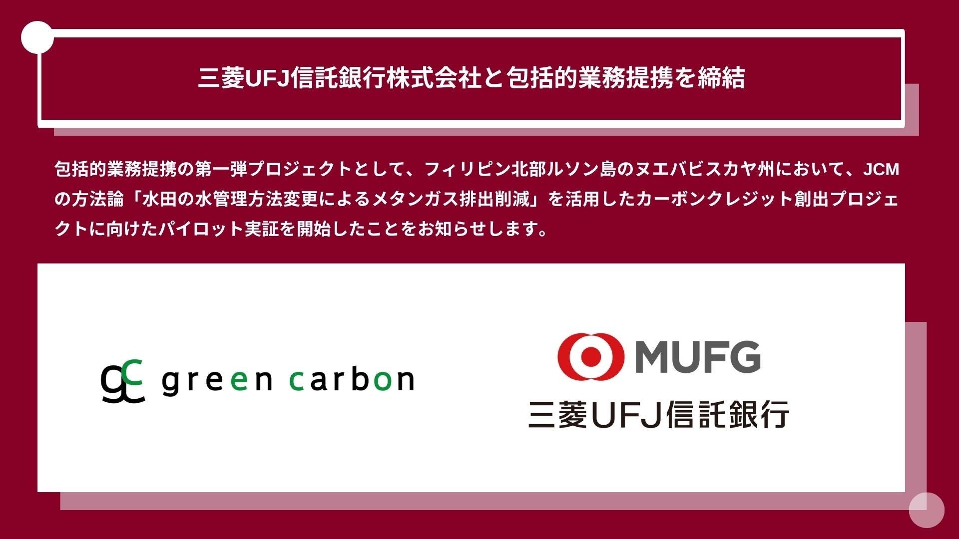 Green Carbon株式会社は、三菱UFJ信託銀行株式会社と包括的業務提携を締結第一弾としてフィリピンにて、水田由来のJCMクレジット創出プロジェクトを開始