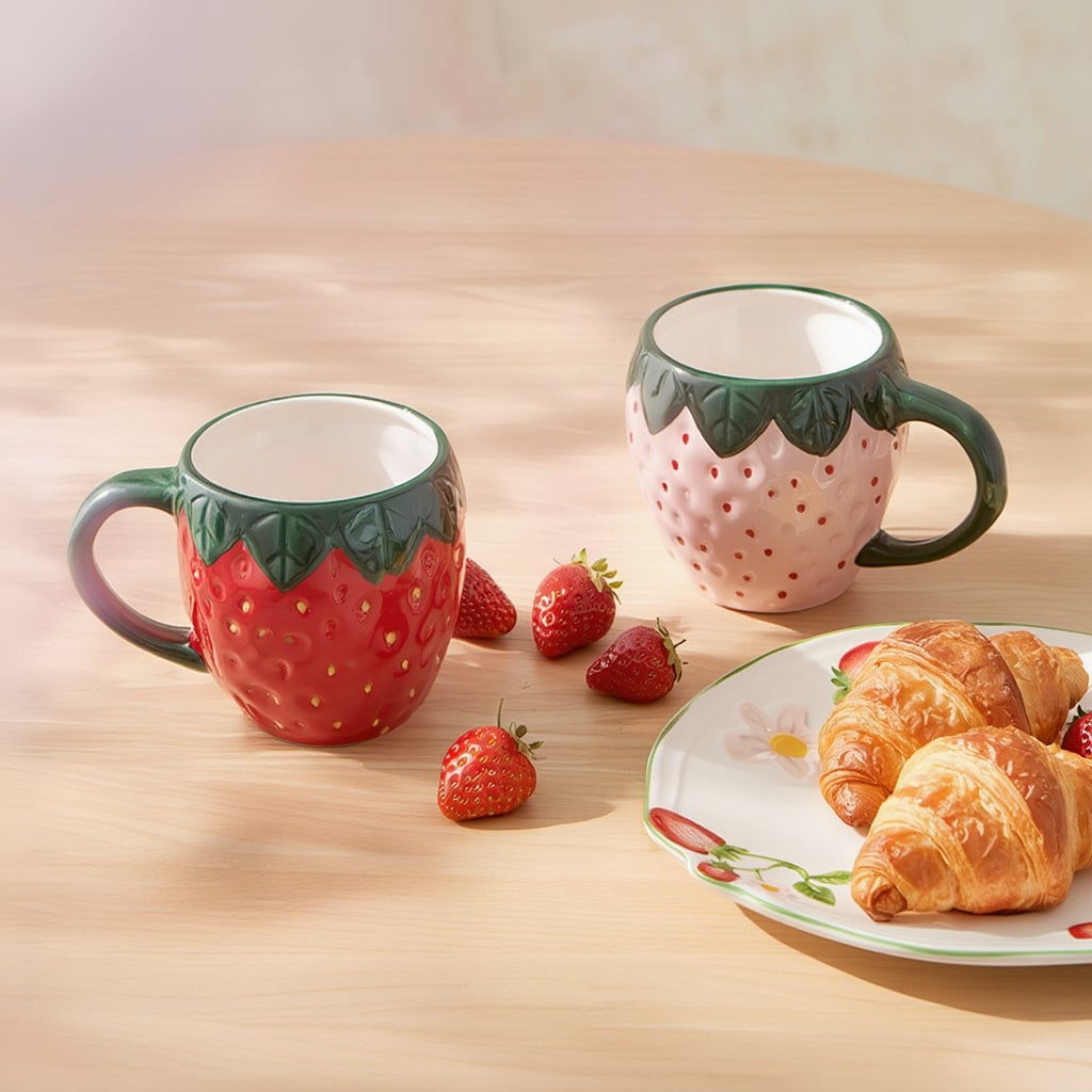 真っ赤ないちごと、ほんのりピンクないちご、ペアで揃えたくなるデザインです。