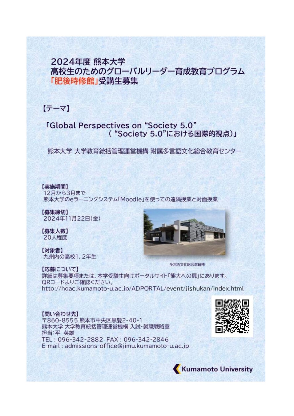 高校生のためのグローバルリーダー育成教育プログラム「肥後時修館」受講生募集について