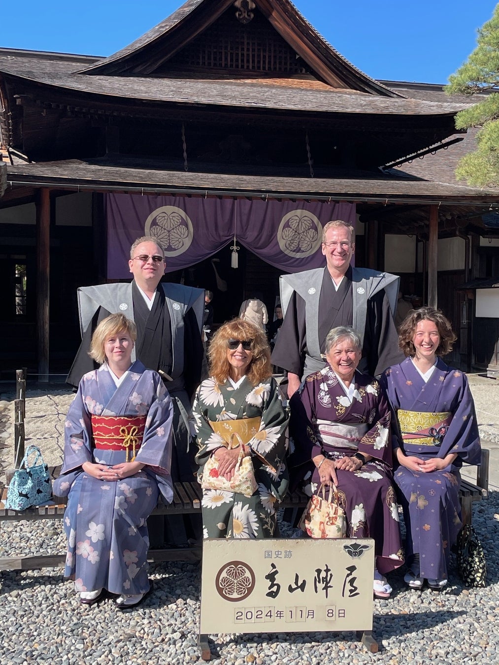 今回高山市を訪れたのは、「デンバー高山姉妹都市委員会」のメンバーと公募で選ばれた20代から70代のデンバー市民7名です。11月7日(木)から11日(月)まで高山市に滞在し、「高山・デンバー友好協会」との交流や飛騨家具製作会社の見学、着物・茶道体験などを行いました。