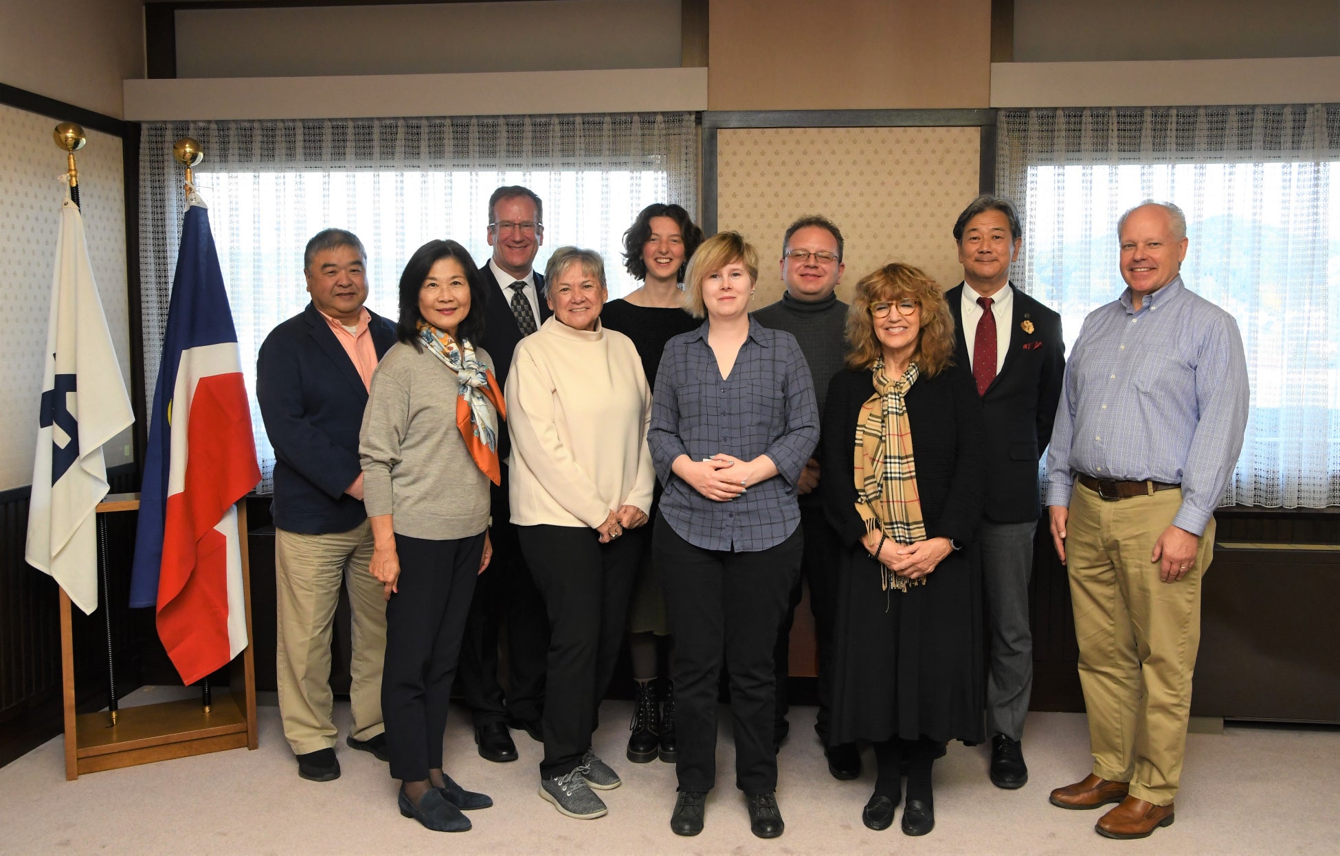 11月8日(金)には、高山市役所を訪れ、田中明高山市長を表敬訪問していただきました。市職員時代から深い繋がりがあり、何度もデンバー市を訪れたことのある市長からは、「前デンバー市長であるハンコックさんは第1回の高校生派遣メンバーとして高山に来たことがある。デンバーでの最も感動的な思い出は、人の優しさと素晴らしい自然でした。来年の夏は姉妹都市提携65周年を記念した市民ツアーを企画してデンバー市を訪れ、市民同士の交流を図りたいと考えています」と話しました。