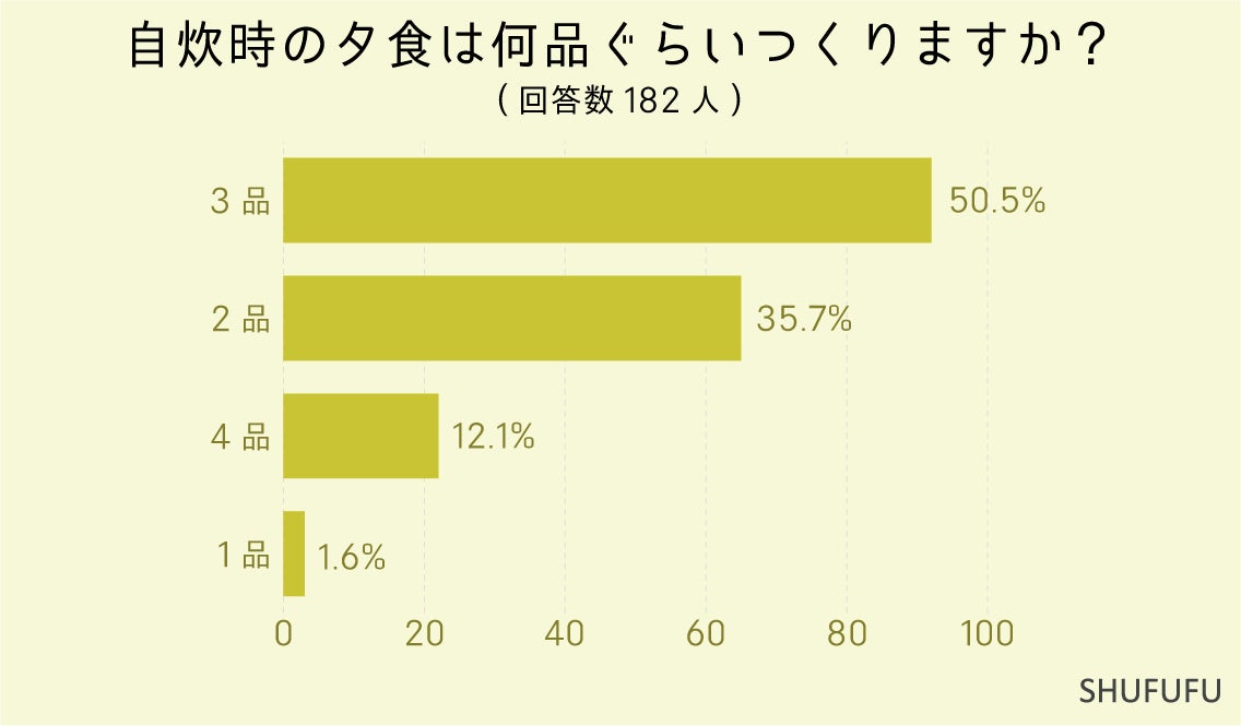 自炊時の夕食は何品ぐらいつくりますか?(米は除く)