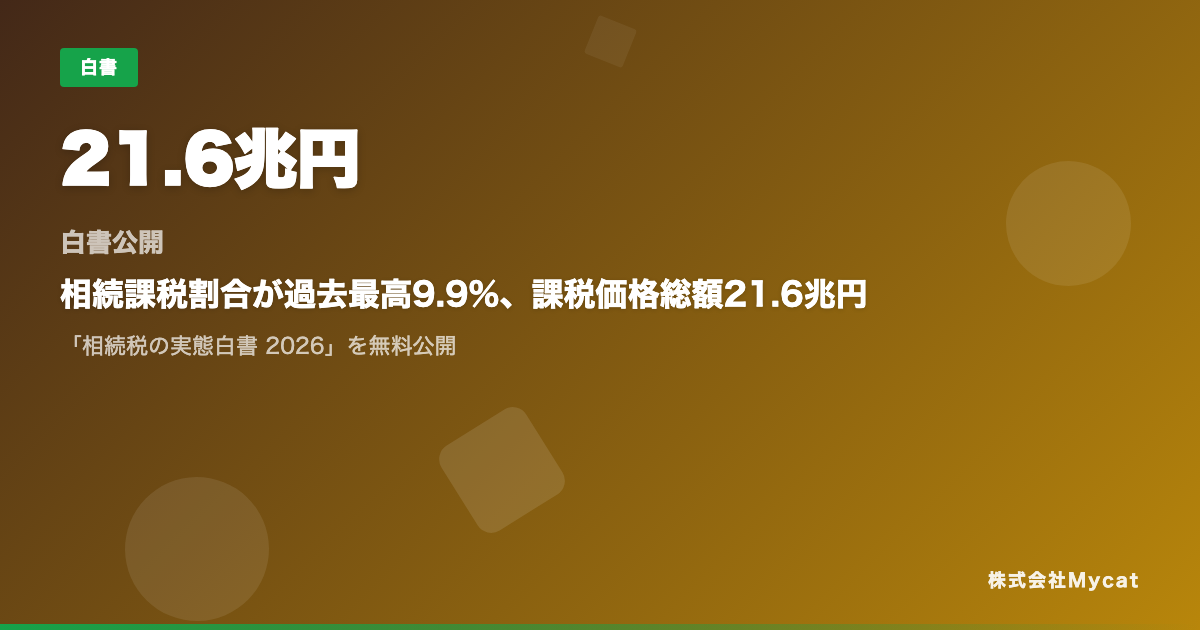 株式会社Mycat(本社:東京都目黒区)は、相続税に関する公的データを分析した「相続税の実態白書 2026」を無料公開いたしました。