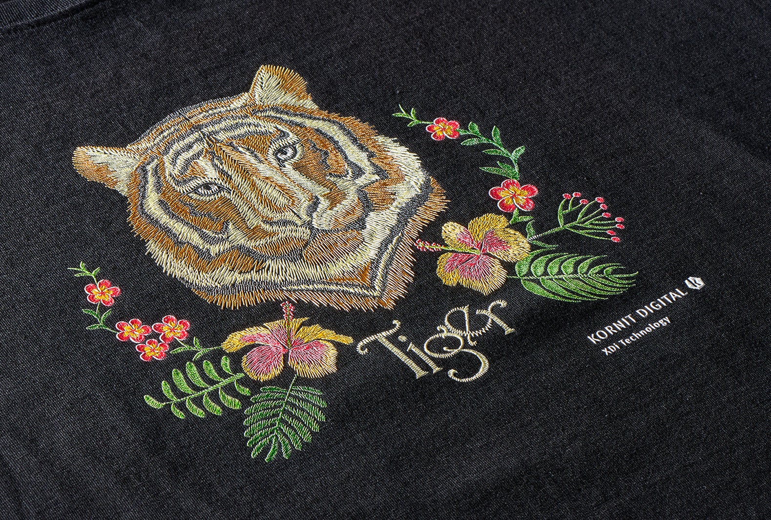 Atlas MAXではインクを重ね、立体感を出すことができます。触ると凸凹を感じる3Dプリントや、糸なしの刺繍風プリントも可能です。