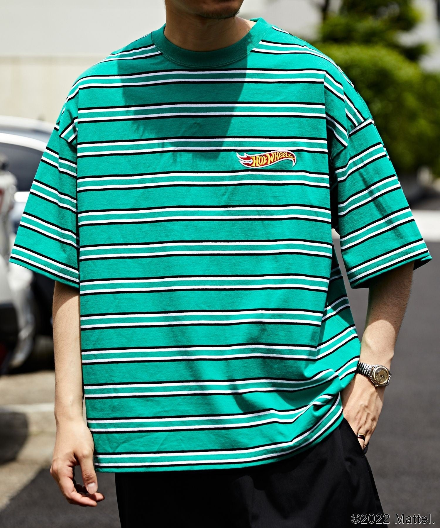 トレンドのマルチボーダーに、Hot Wheels™の刺繍が施されたTシャツ。