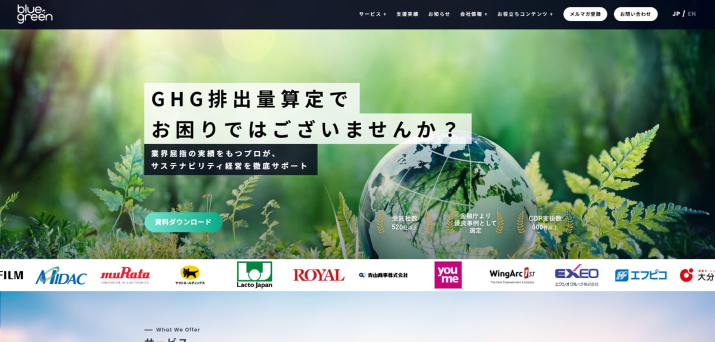 今回のリニューアルでは、トップページを刷新し、当社が提供するサステナビリティ経営に関するサービス内容や、これまでの支援実績を見やすく整理して掲載しています。また、昨今のグローバル化に伴い、海外からのお問い合わせにも対応できるよう、一部のページに英語サイトを追加しました。