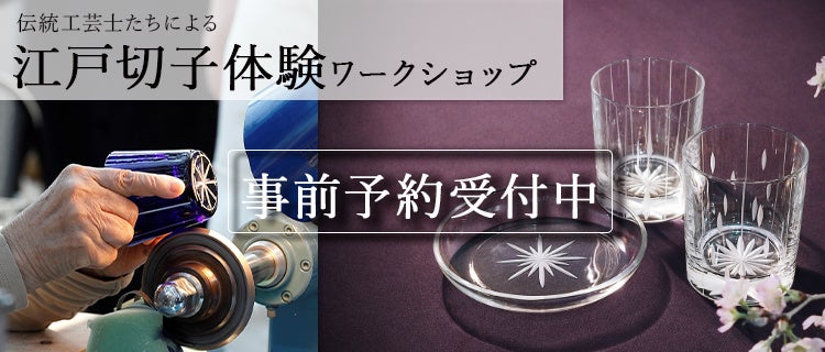 本ワークショップでは、江戸切子職人たちに直接手解きを受けながら、自らの手で江戸切子をカットすることができます。いま特に勢いのある伝統工芸品・江戸切子に触れられる体験は、今年の春の思い出になること間違いなし。この貴重な機会をどうぞお見逃しなく!