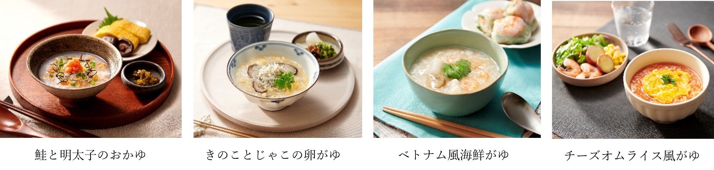 また、健康志向の高まりから注目されているおかゆに、さらっと食べやすい「粒立ちがゆ」メニューを新たに搭載。粒感を残しつつ甘みがあるおかゆが楽しめる、健康的な日常食として提案します。