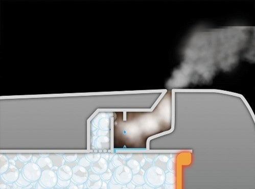 ふたの内側に設けた小さな穴が沸とう時に発生する泡をつぶし、蒸気とおねばに分離させることでふきこぼれを抑制する象印独自の構造です。一般的に炊飯ジャーは、ふきこぼれを防ぐために火力を弱めるなど調整をしますが、大火力ユニットを搭載することによって、高温で炊き続けることができるので、芯までふっくら炊き上げることができます。