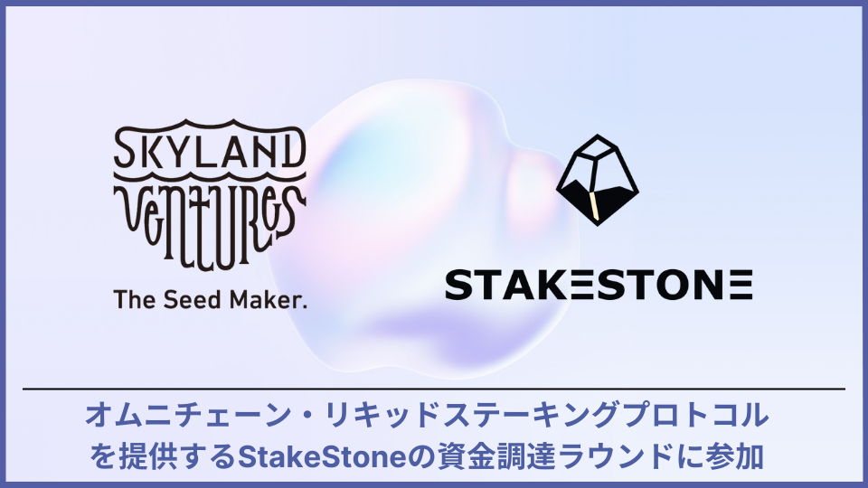 Skyland Ventures、複数チェーンでリキッドステーキングトークンプロトコルを提供するStakeStoneの資金調達ラウンドに参加