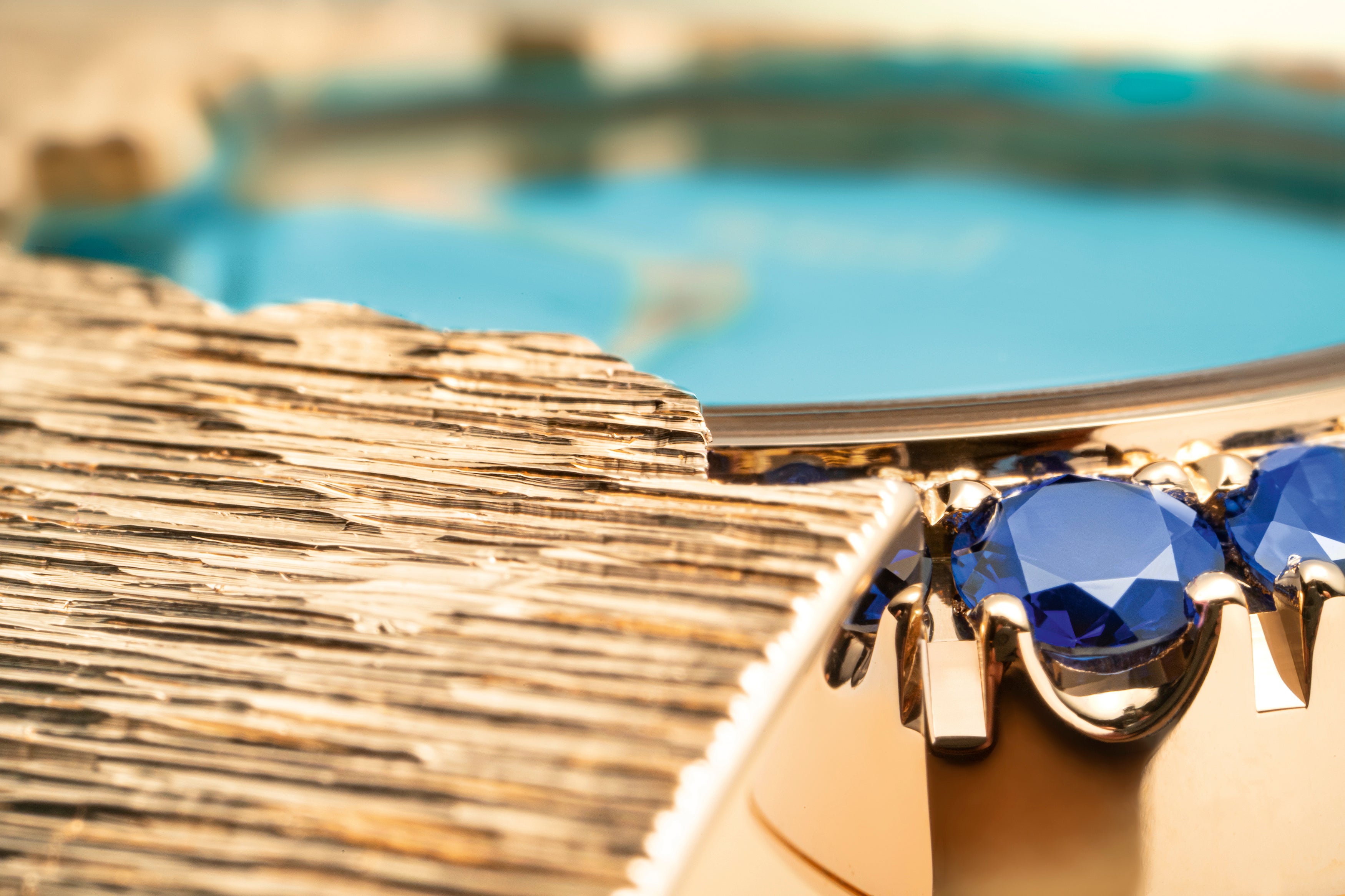 これらの傑作の中で、ひと際注目を集めたのが Undulataです。フランス人アーティストのローズ・サヌイユはグリーン、ブルーそして虹色に輝く色彩を、吸い込まれるようなデザインの文字盤の上で繊細に組み合わせ、ボリューム、テクスチャー、色彩のミニチュアのマルケトリーを作り上げました。