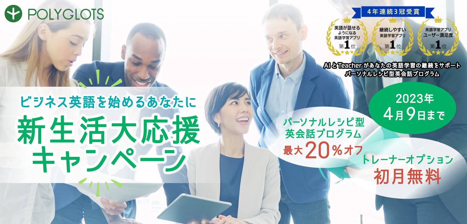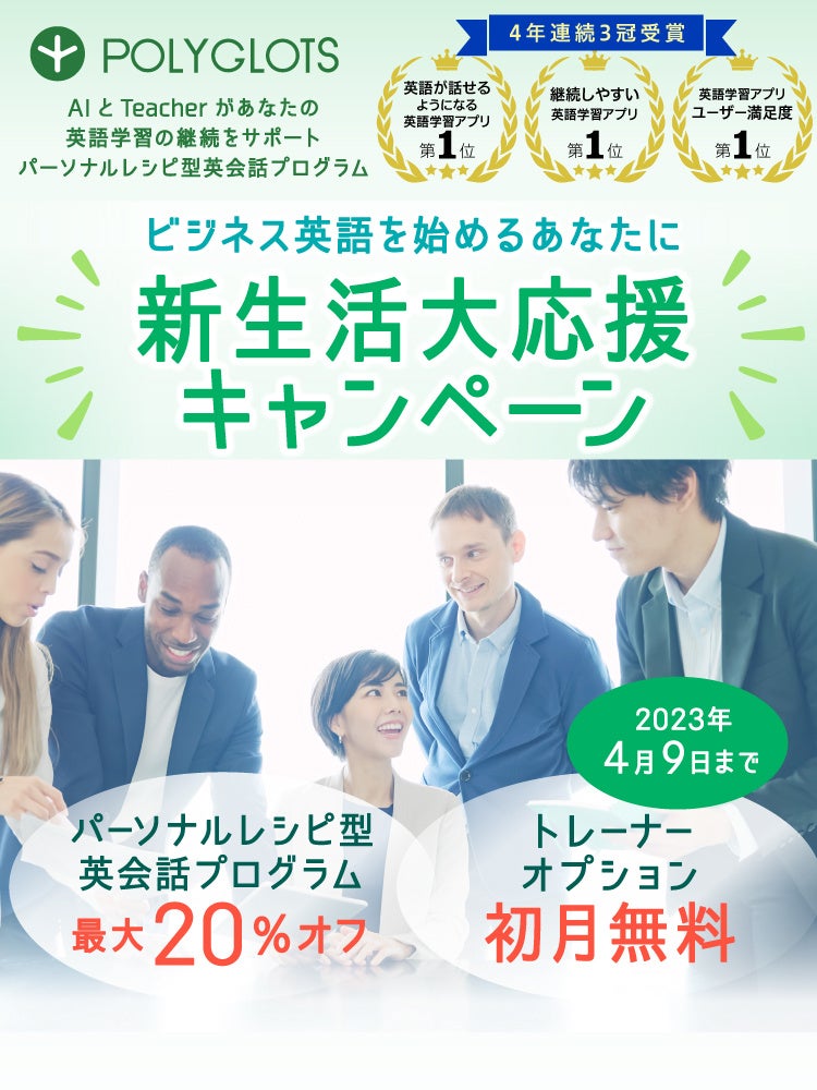 【パーソナルレシピ型ビジネス英会話】新生活大応援キャンペーン開催 - 株式会社ポリグロッツ- 2023年3月20日(月)~2023年4月9日(日)