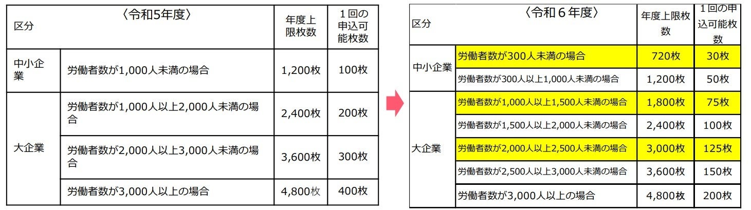1.各企業の1回当たり申込上限枚数を年間上限枚数の1/12から1/24へ変更