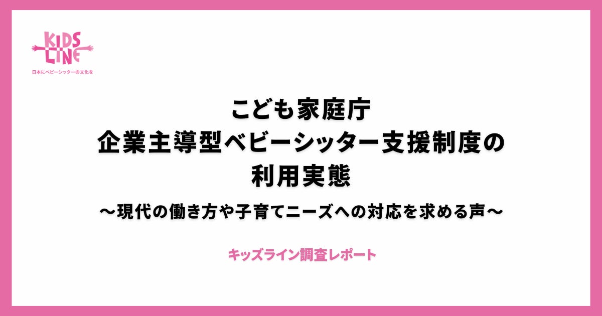 こども家庭庁 企業主導型ベビーシッター支援制度の利用実態~現代の働き方や子育てニーズへの対応を求める声~〈キッズライン調査レポート〉