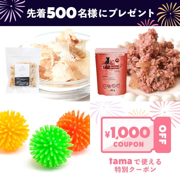 プレミアムキャットフード専門店・通販「たまのおねだり(tama)」(運営:マーケティングパートナー株式会社、本社所在地:東京都新宿区、代表取締役社長:権田真司、Tel:03-6772-8194、https://www.tamaone.jp/)は、8月20日(火)15時より、「夏祭りキャンペーン」を開催いたします。期間中、tamaで常温商品を3,850円(税込)以上ご購入いただいた先着500名様に、猫に人気の花削りやウェットフード、オモチャなど、いずれかおひとつプレゼントします。何が届くか、猫と一緒にワクワクしながらtamaの夏祭りをお楽しみください。