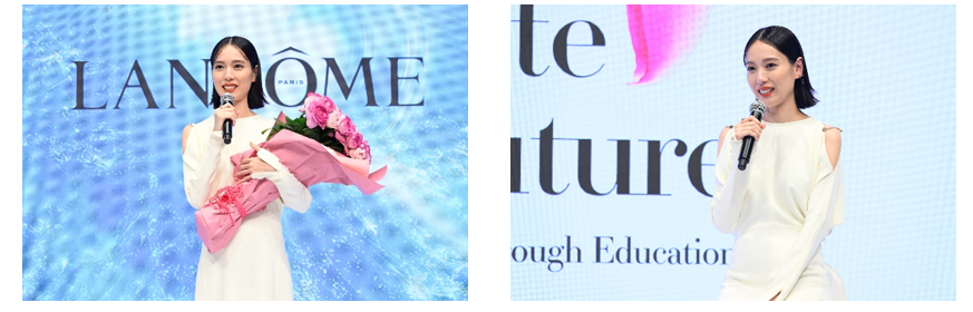 また、ランコムのCSR活動の1つである、女性の教育支援を行う「Write Her Future」についての話題では、日本で力を入れているデジタルリテラシーに関する取り組みについて、「デジタルリテラシーについては弱い方なのですが、勉強しなければいけないスキルだなと思っています。今後もそういった学びの場が提供されると良いですね。」とランコムの取り組みに対して共感を示した。