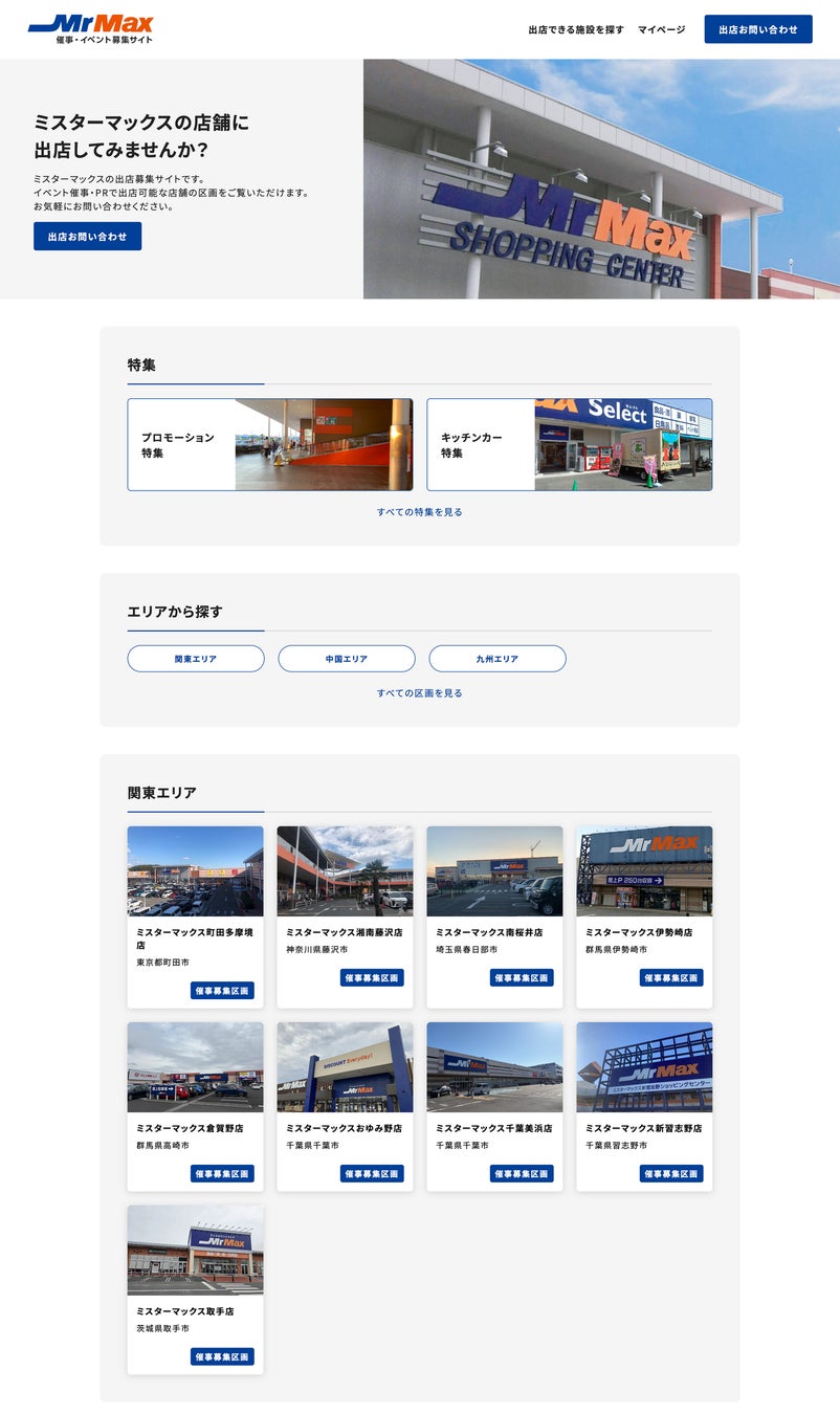 ▼「ミスターマックス催事・イベント募集サイト」の画面イメージ