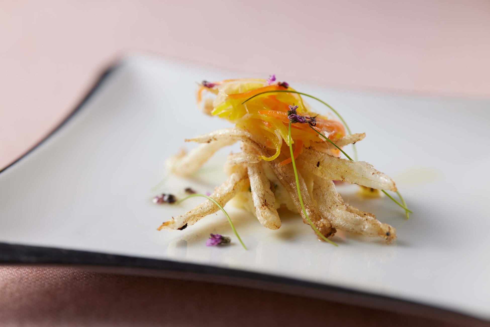 白魚のエスカベッシュに酸味を加え、オリーブオイルと一緒にマリネした春の野菜と共にさっぱりとした口当たりでお楽しみいただけます。
