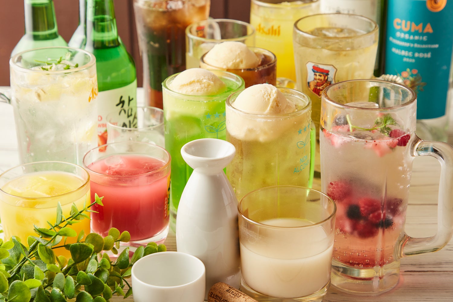 ・チャミスル・エイドドリンク・メロンクリームソーダ・コーラフロート・ジンジャエールフロート、など