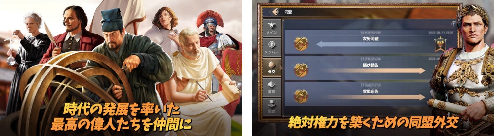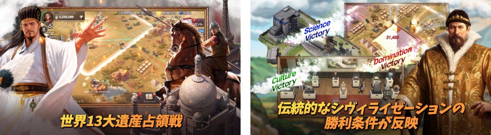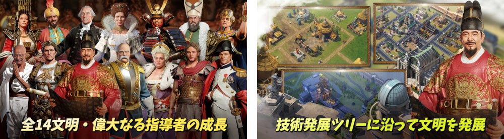 制覇、科学、文化など、原作の様々な勝利要素をそのまま継承し、新たに同盟同士の大型PvP戦争と外交コンテンツも取り入れています。全14個の特色ある文明の中から1つを選択し、歴史的な指導者を通じて、自分の領地や同盟を発展させることができます。