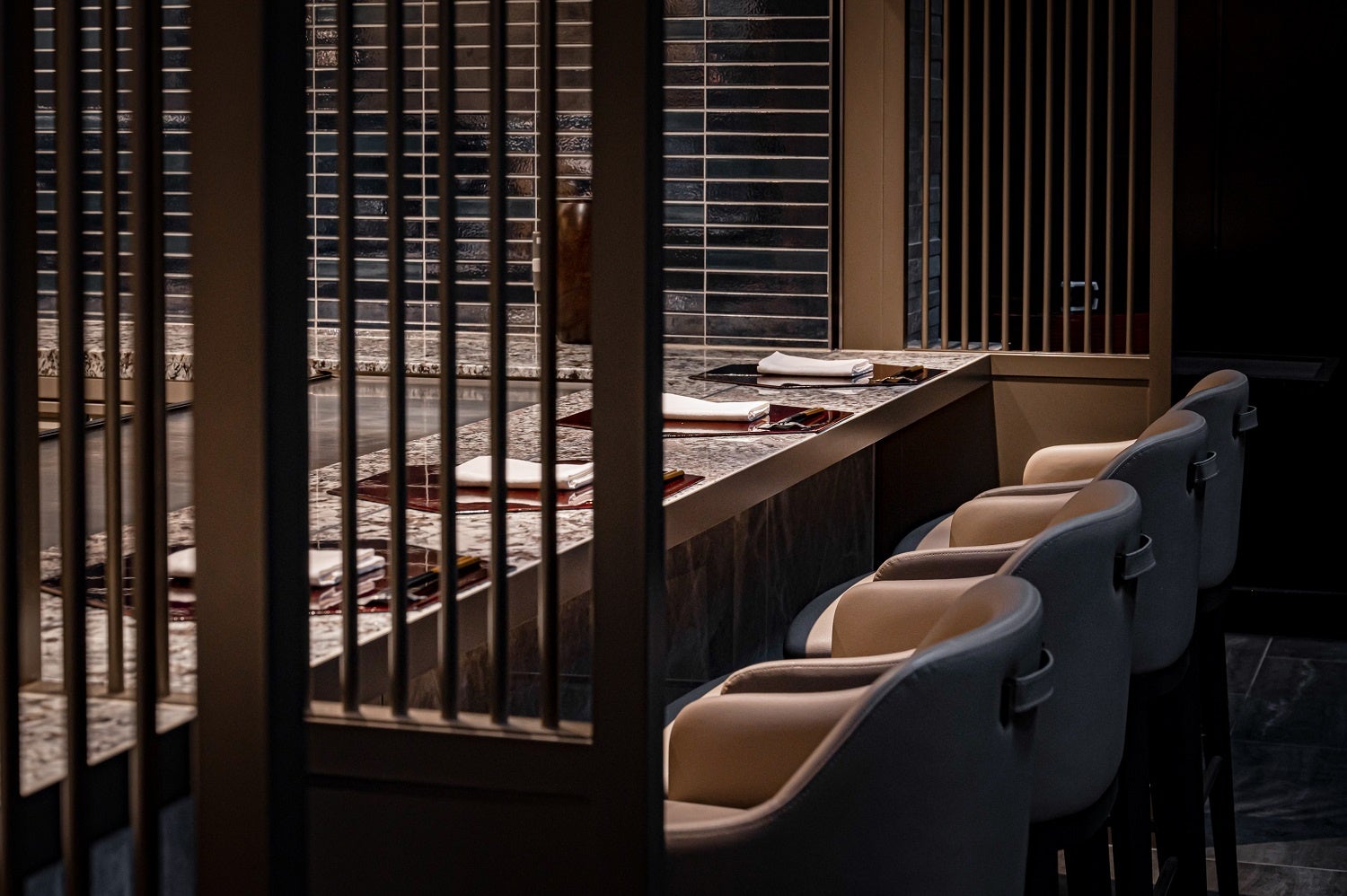26階の「ザ・スコア・ダイニング」は、音楽を共有するために必要な“楽譜”になぞらえた4つのレストランが競演するエリア。多くの賞に輝くスターシェフたちによる、独創的な美食の数々を楽しめるデスティネーション・レストランです。ギリシャ語で“リズム”を意味するカフェ&バー「リュトモス」は、スコア・ダイニングの世界へお客さまをいざなうエントランスです。続くイタリアングリル「メロディア」は、音楽を構成する要素のひとつであるメロディをイメージ。「リュトモス」の空間とデザインをゆるやかに引き継ぎ、「メロディア」の空中に浮かぶ照明が音符を思わせます。東京のパノラマが広がる圧巻の眺望が堪能できる「チャイナシャドー」は、オーセンティックなチャイニーズをベースに新たな食材やエッセンスを掛け合わせた中国料理を提供します。そしてアトリウムの中央、「リュトモス」と「メロディア」の間には、鉄板焼「風音」。ストリングスが奏でる美食の競演をお楽しみください。