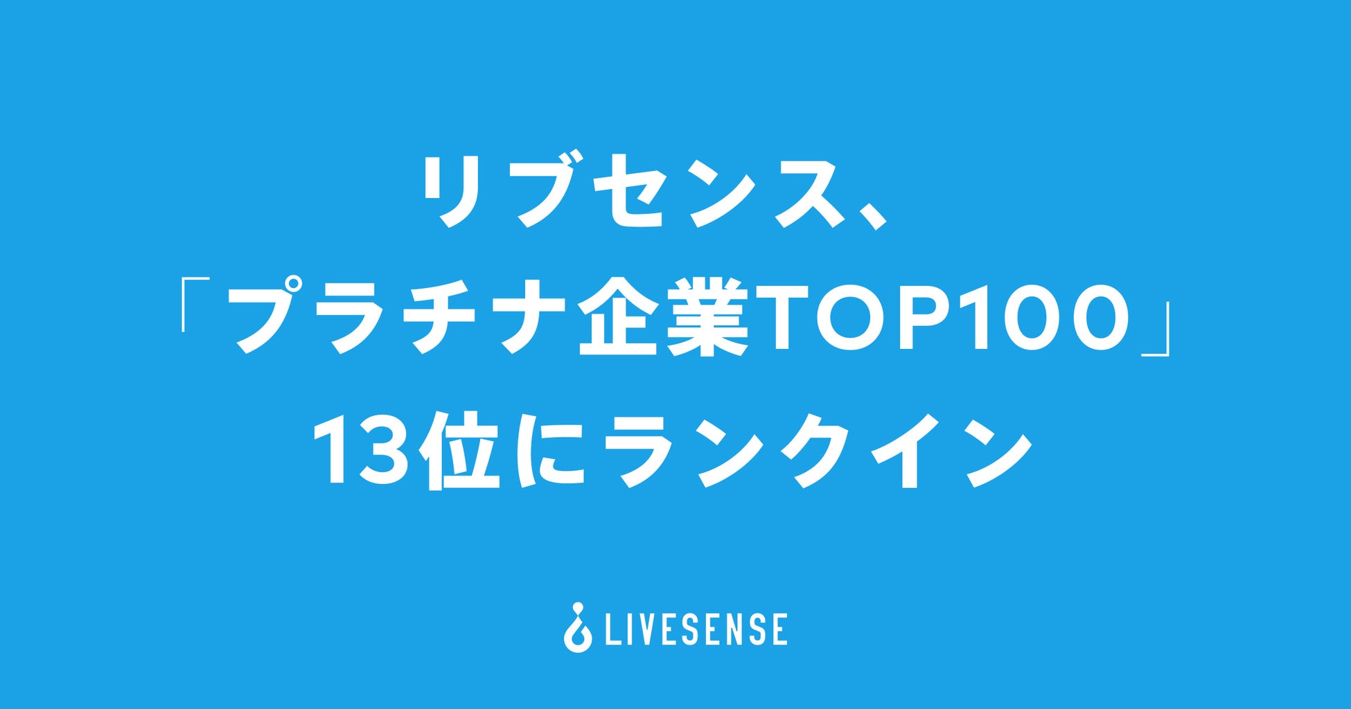 リブセンス、「プラチナ企業TOP100」において13位にランクイン