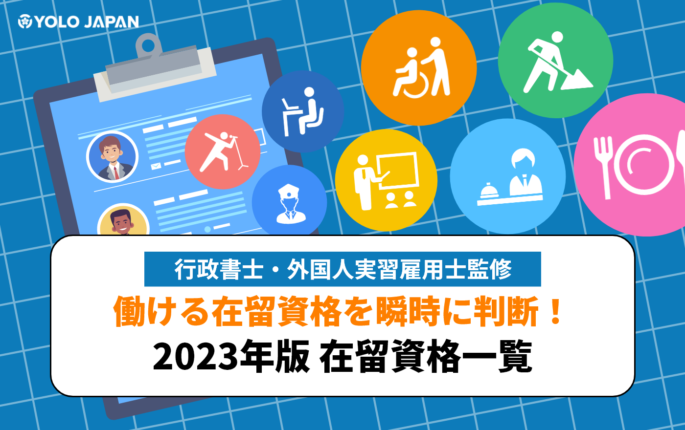 https://work.yolo-japan.co.jp/11442-2からお役立ち資料 『【行政書士・外国人実習雇用士監修】在留資格一覧』をダウンロードいただけます。