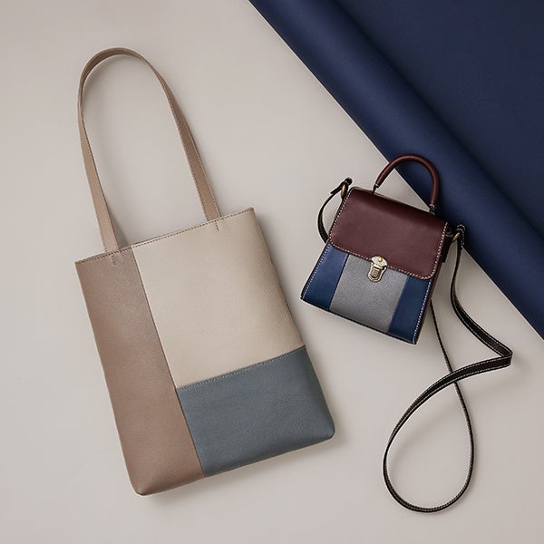 肩にゆったりと掛けられる、縦型トートバッグです。職人が色合いを考えながら組み上げるカラーブロックは、バッグの前と後ろでパターンが異なり、スタイリングの幅を広げます。A4サイズながら、軽やかに持てる機能性もポイントです。