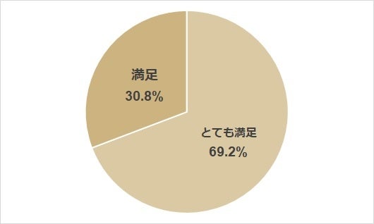 今回のセミナーの満足度について、「とても満足」69.2%、「満足」30.8%で、参加学生全員が満足だったと回答。「どちらとも言えない」、「どちらかというと不満」、「不満」は0%だった。